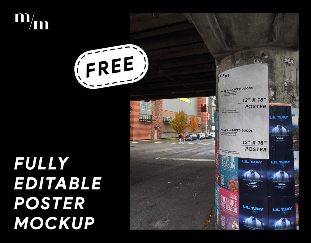12" x 18" poster against a textured concrete pillar underneath a highway overpass.