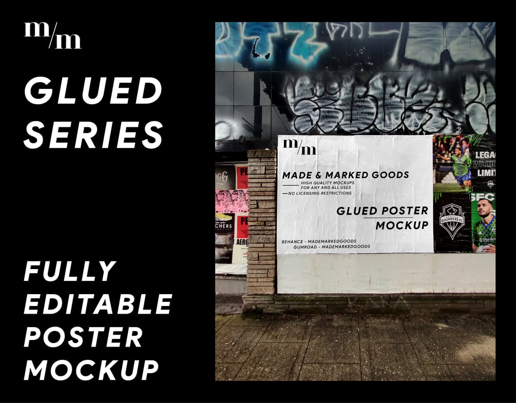 Premium, fully-editable PSD glued poster mockup.